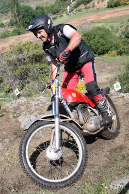 Pedro Pí en acción y seguramente que "tomando nota" de lo que sería la nueva trialera de Montesa.