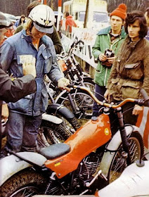 Pedro Pí en acción y seguramente que "tomando nota" de lo que sería la nueva trialera de Montesa.